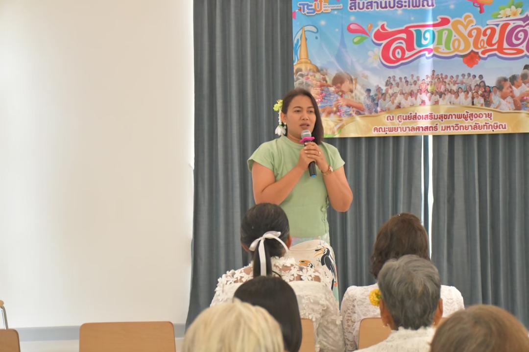 วันที่ 9 เมษายน 2568 คณะพยาบาลศาสตร์ มหาวิทยาลัยทักษิณ ได้จัดโครงการ “สืบสานประเพณีสงกรานต์ 2568” ณ ศูนย์ส่งเสริมสุขภาพผู้สูงอายุ คณะพยาบาลศาสตร์ โดยมีวัตถุประสงค์เพื่อส่งเสริมและอนุรักษ์วัฒนธรรมไทย ตลอดจนเสริมสร้างความรัก ความสามัคคี และความเคารพในผู้สูงอายุในชุมชนและองค์กร